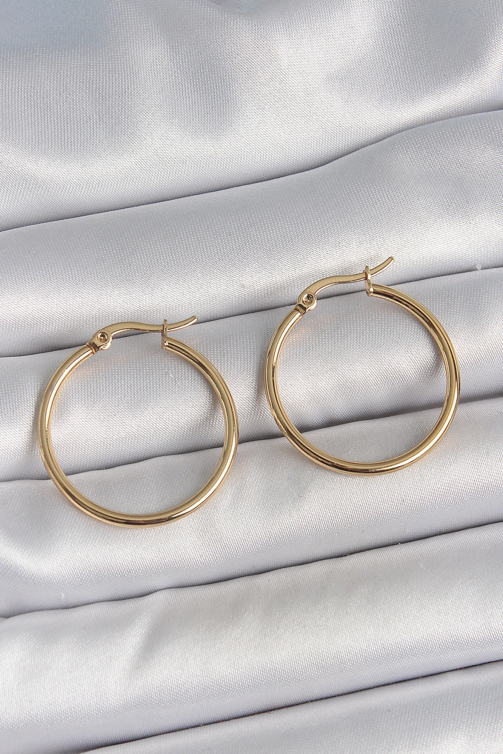 316 Çelik Gold Renk 27 mm Halka Model Kadın Küpe