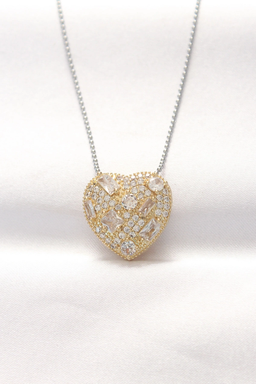 316L Çelik Çift Renk Zirkon Taşlı Kalp Kolye