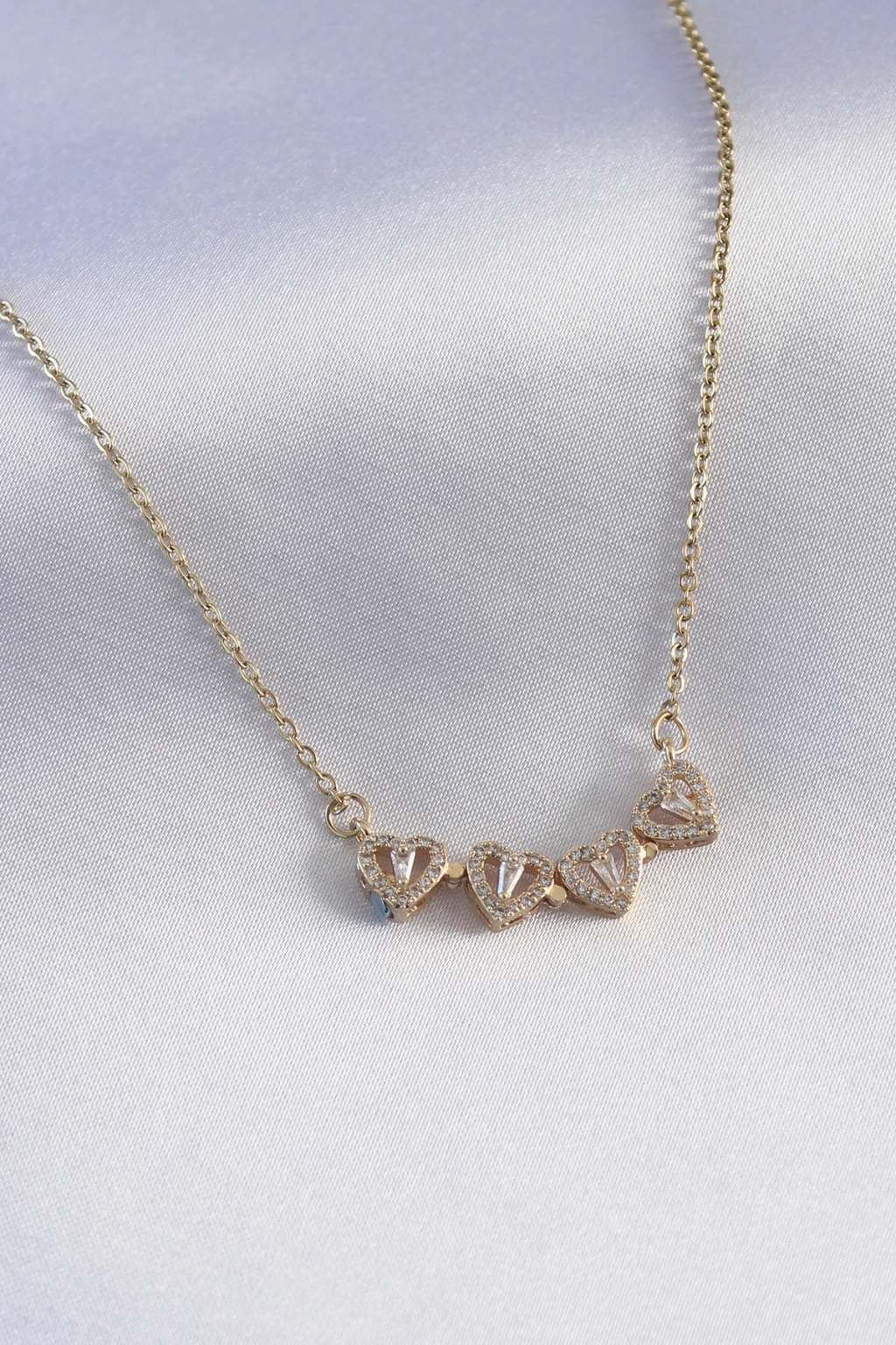 316L Çelik Gold Renk Açılır Zirkon Taşlı Yonca Model Kadın Kolye