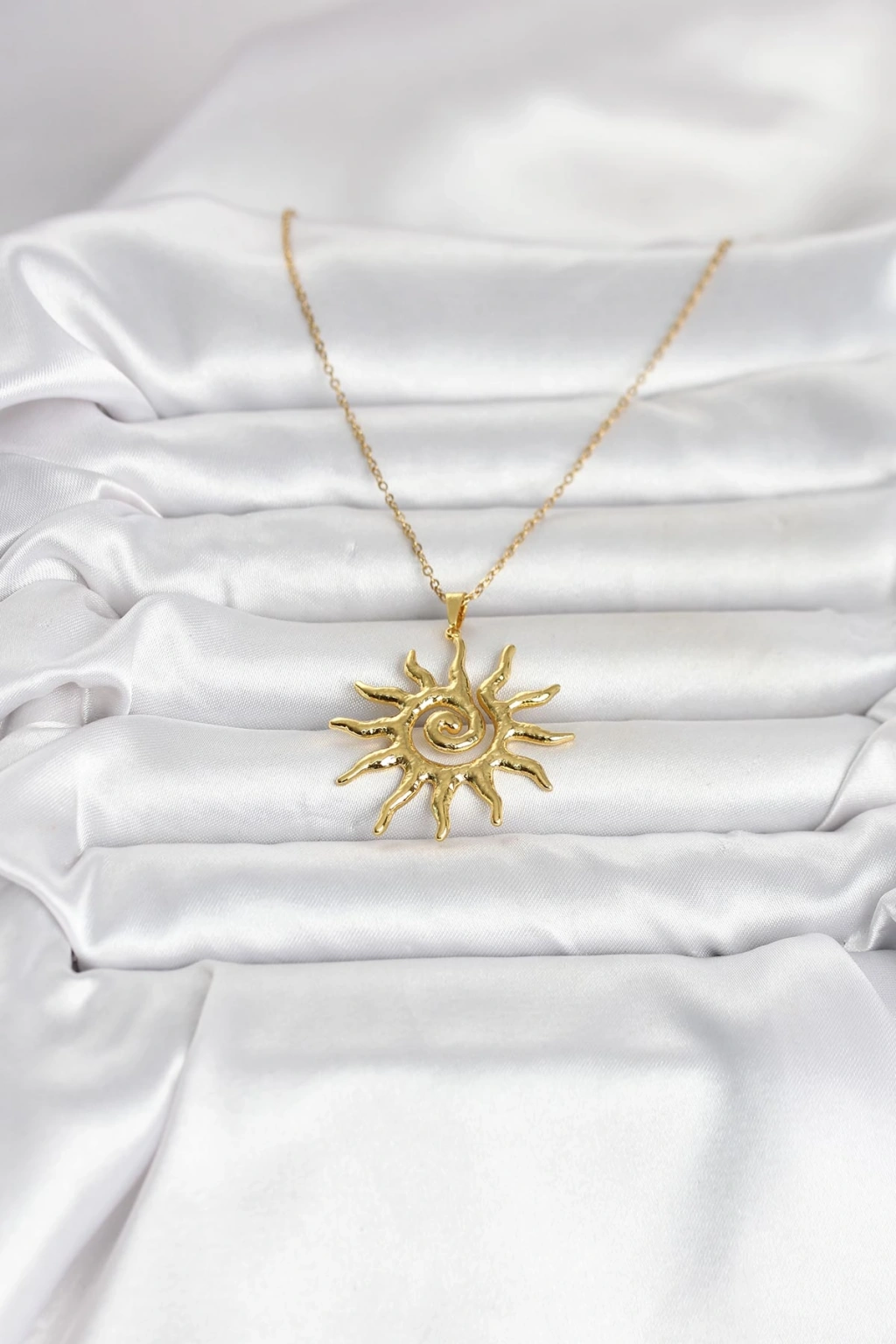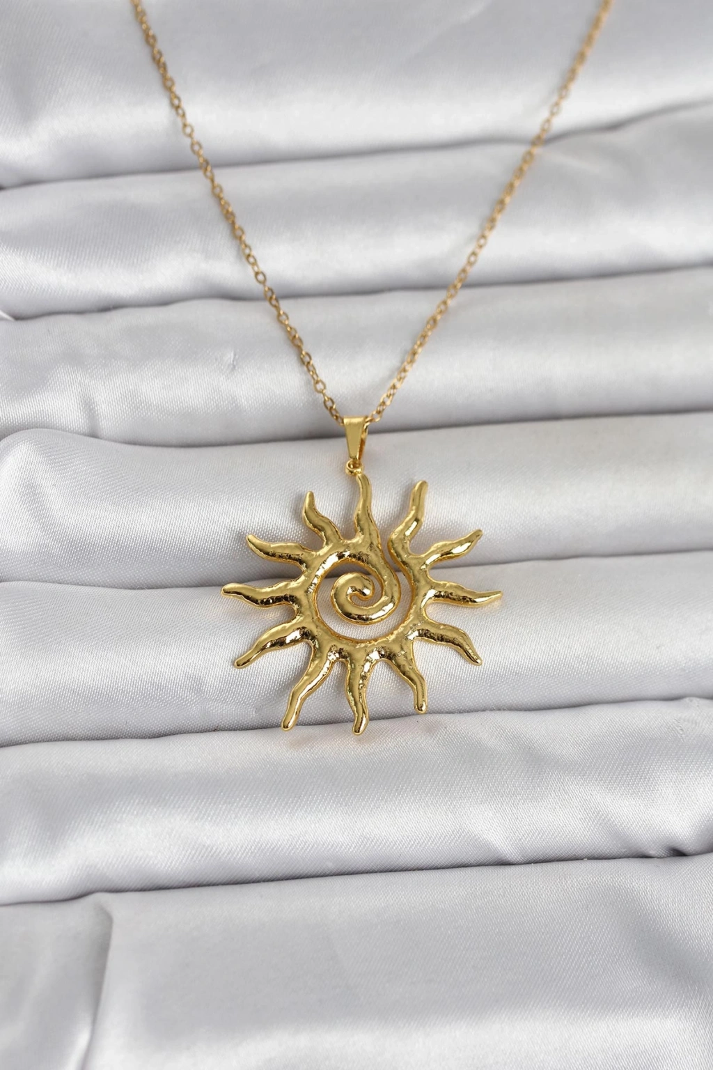 316L Çelik Gold Renk Bohem Güneş Model Kadın Kolye