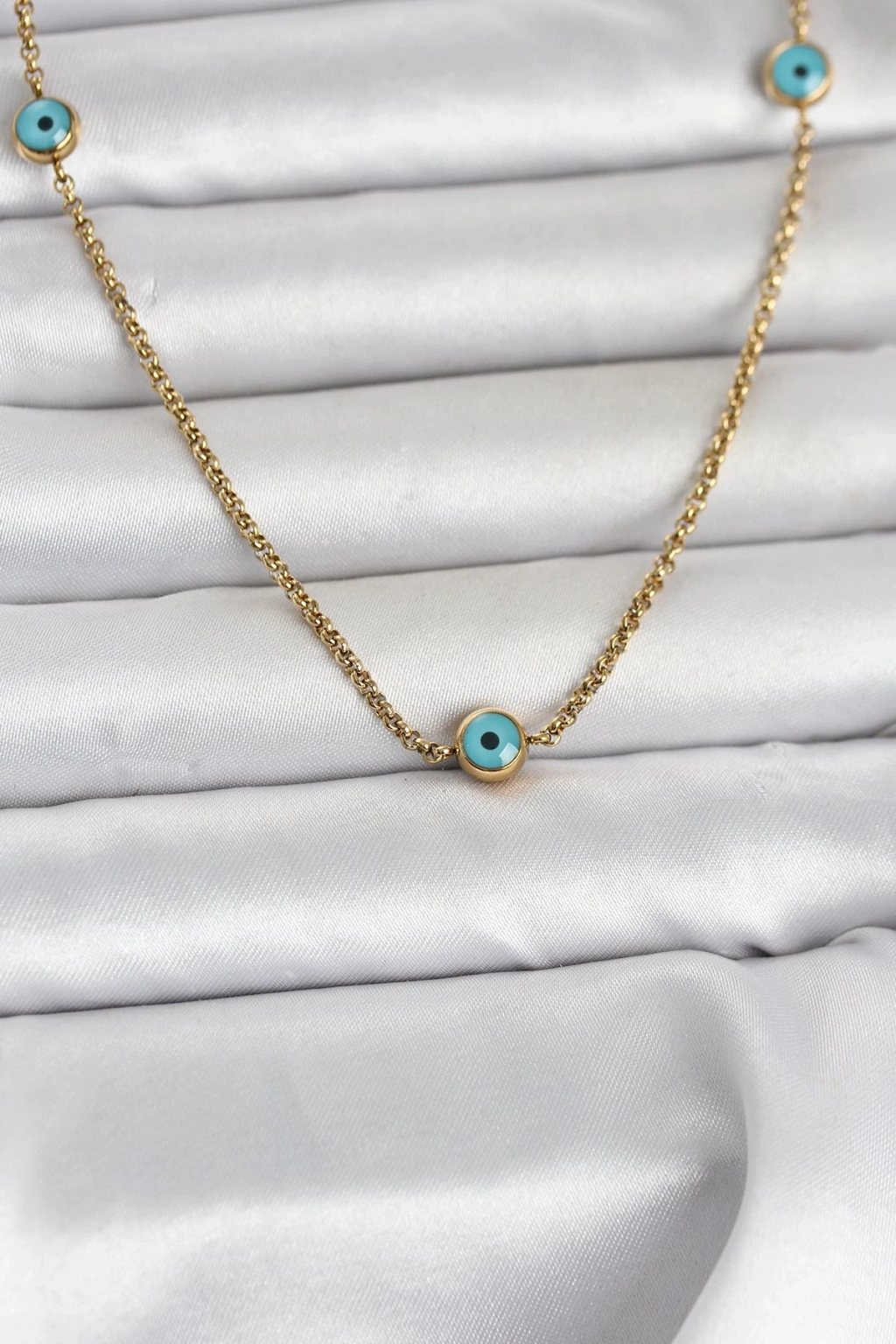 316L Çelik Gold Renk Nazarlı Model Kadın Kolye