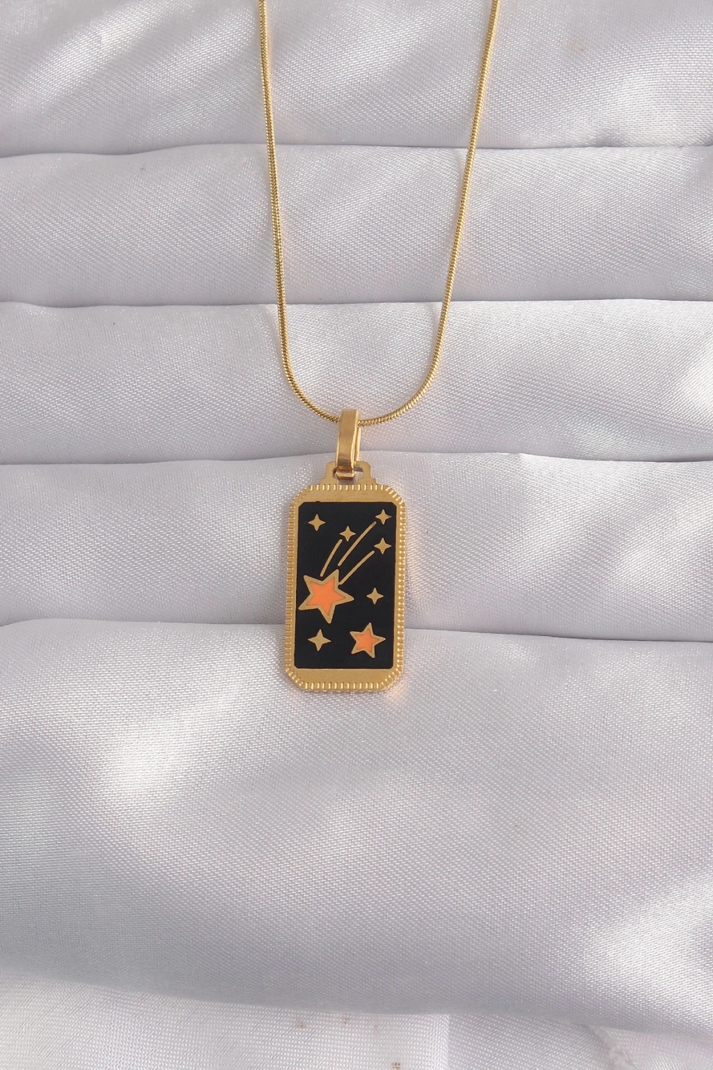 316L Çelik Gold Renk Siyah Mineli Yıldız Figür Tarot Kolye