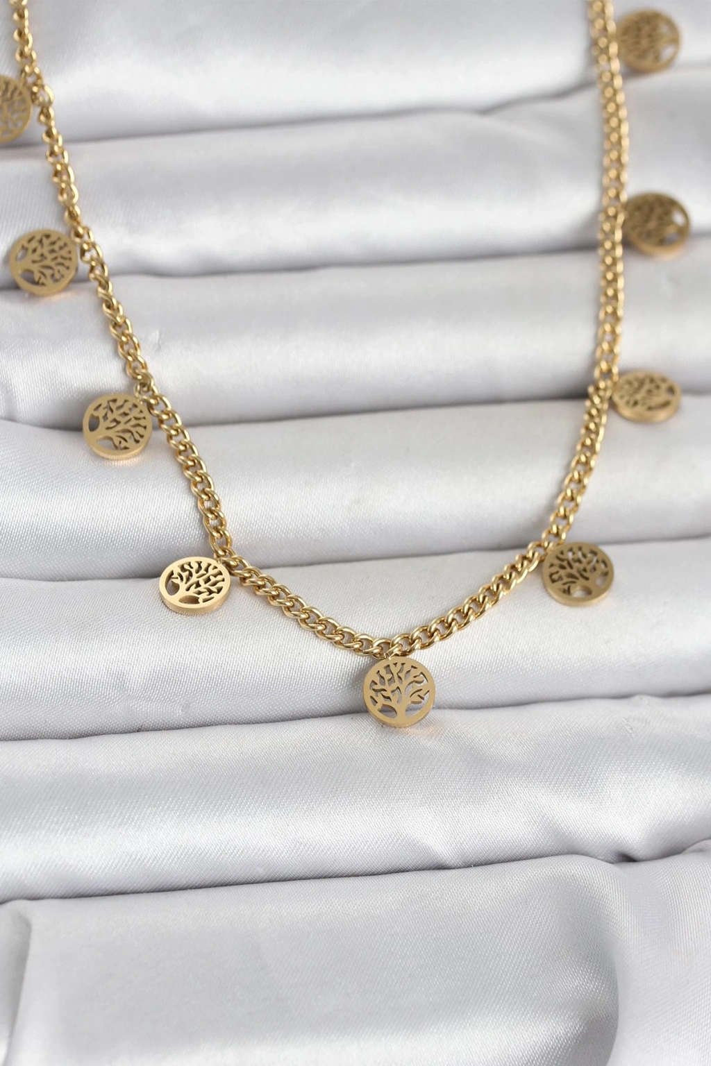 316L Çelik Gold Renk Yaşam Ağacı Model Kadın Kolye