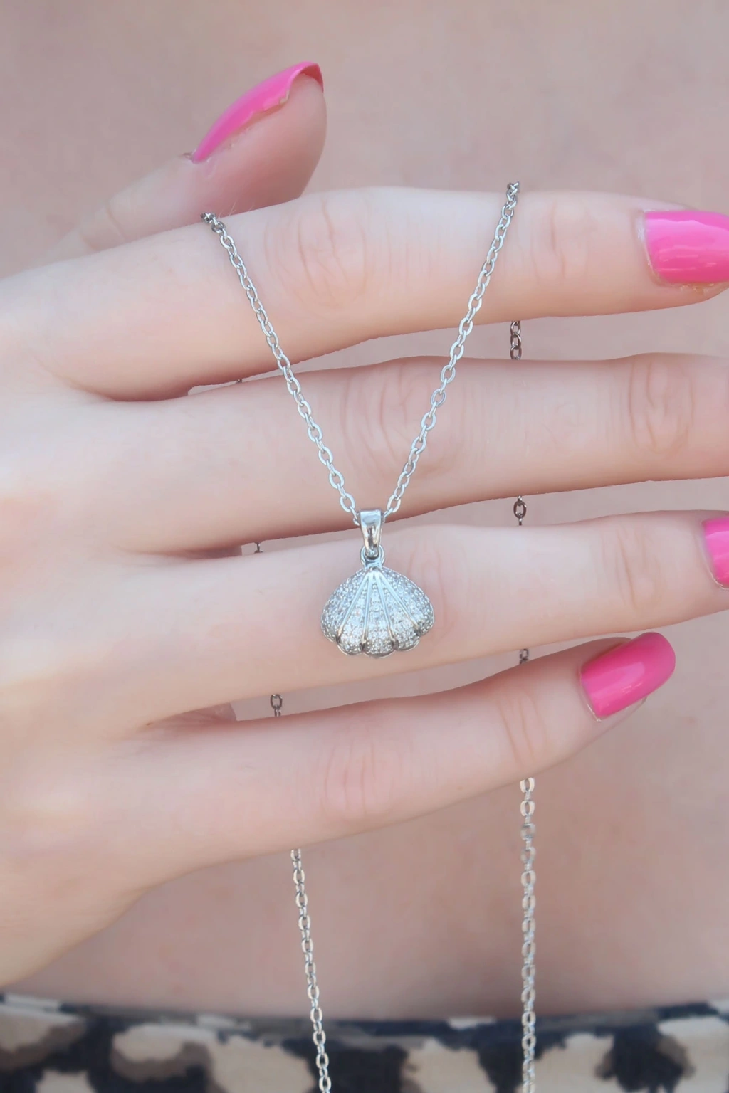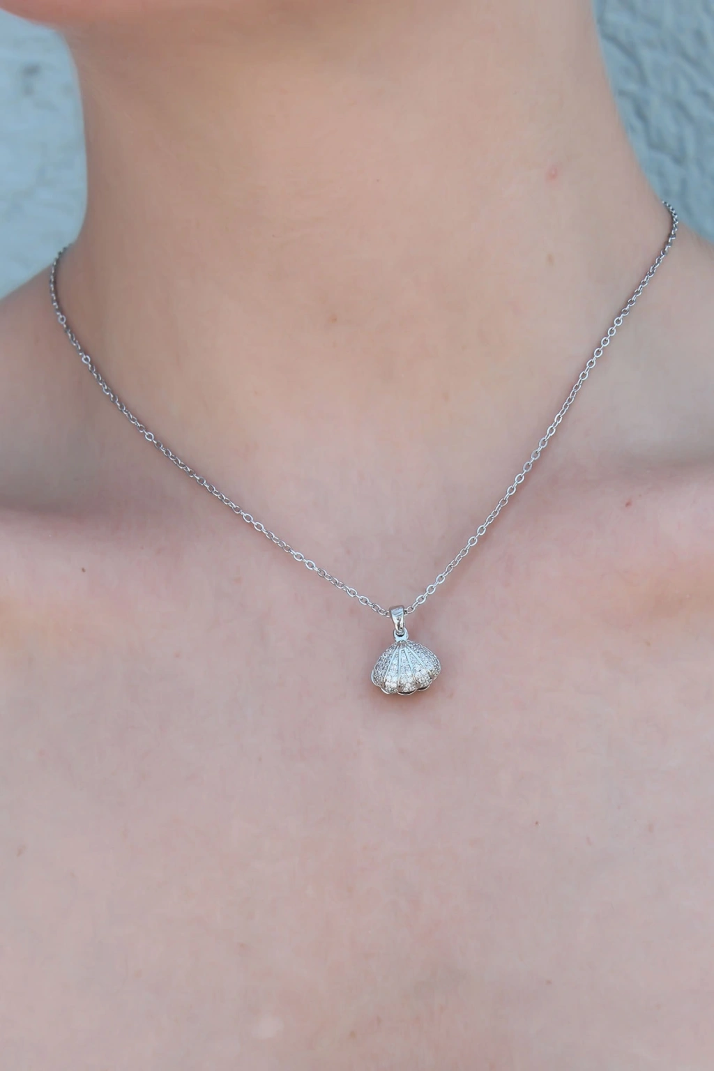 316L Çelik Gümüş Renk Açılır Midye Model Kadın Kolye