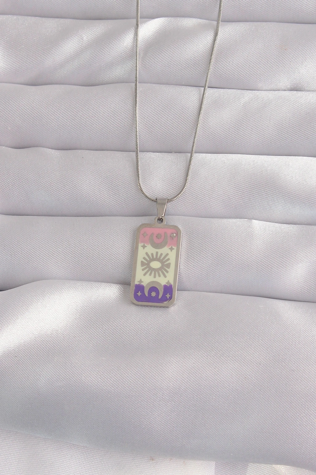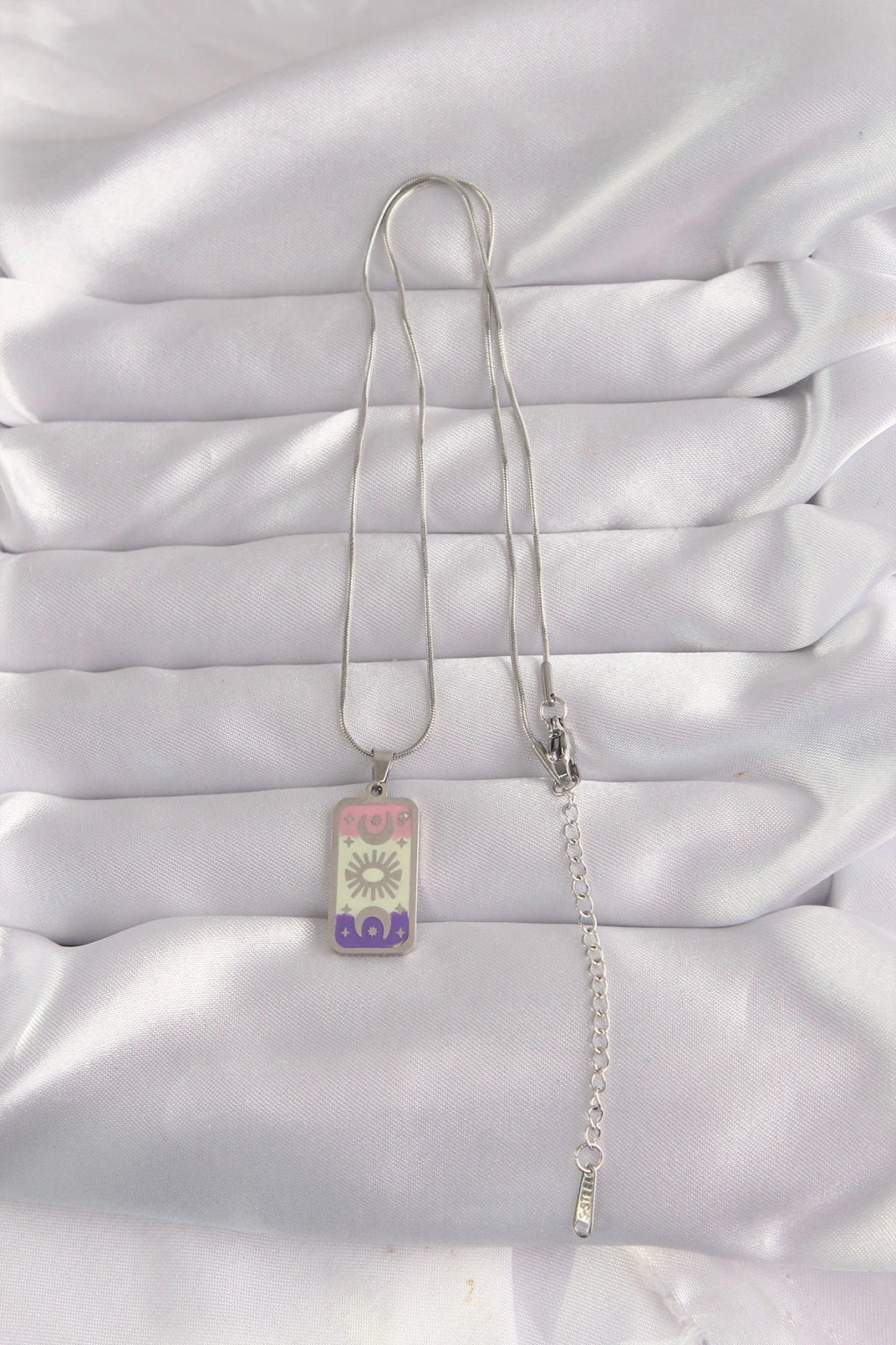 316L Çelik Gümüş Renk Karışık Mineli Ay Figür Tarot Kolye