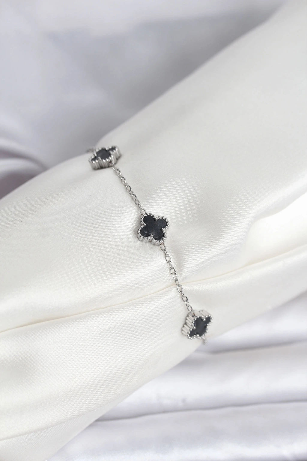 316L Çelik Gümüş Renk Siyah Baby Boy Yonca Bileklik