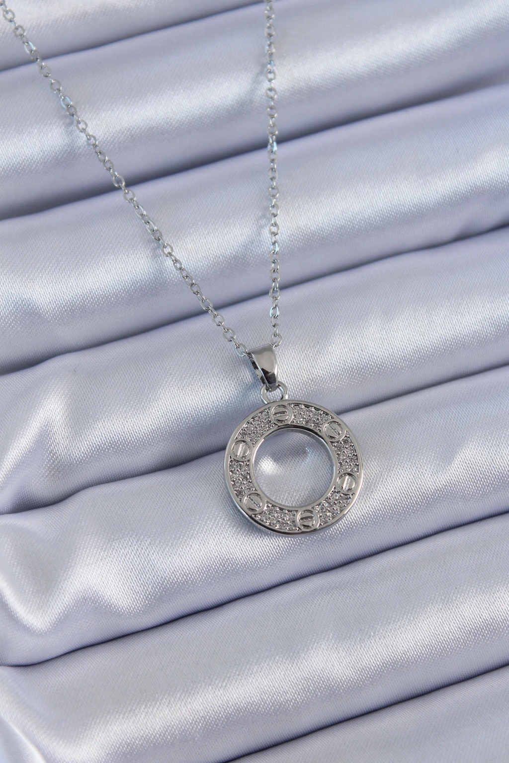 316L Çelik Gümüş Renk Zirkon Taşlı Model Kadın Kolye