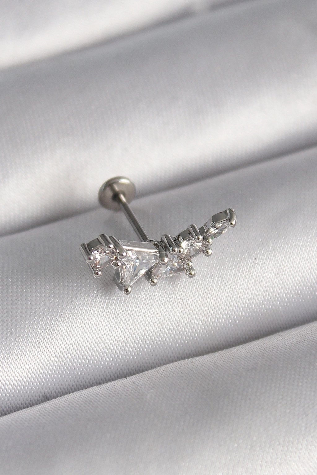 316L Çelik Gümüş Renk Zirkon Taşlı Tragus Piercing