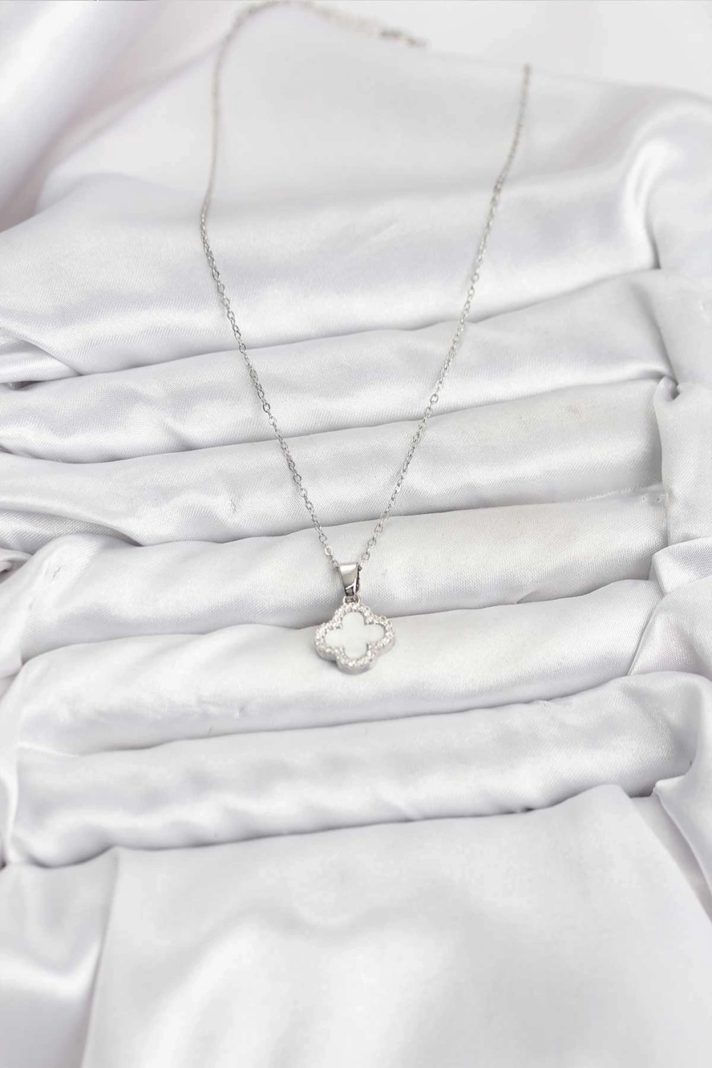 316L Çelik Zincir Gümüş Renk Sedefli Yonca Kadın Kolye