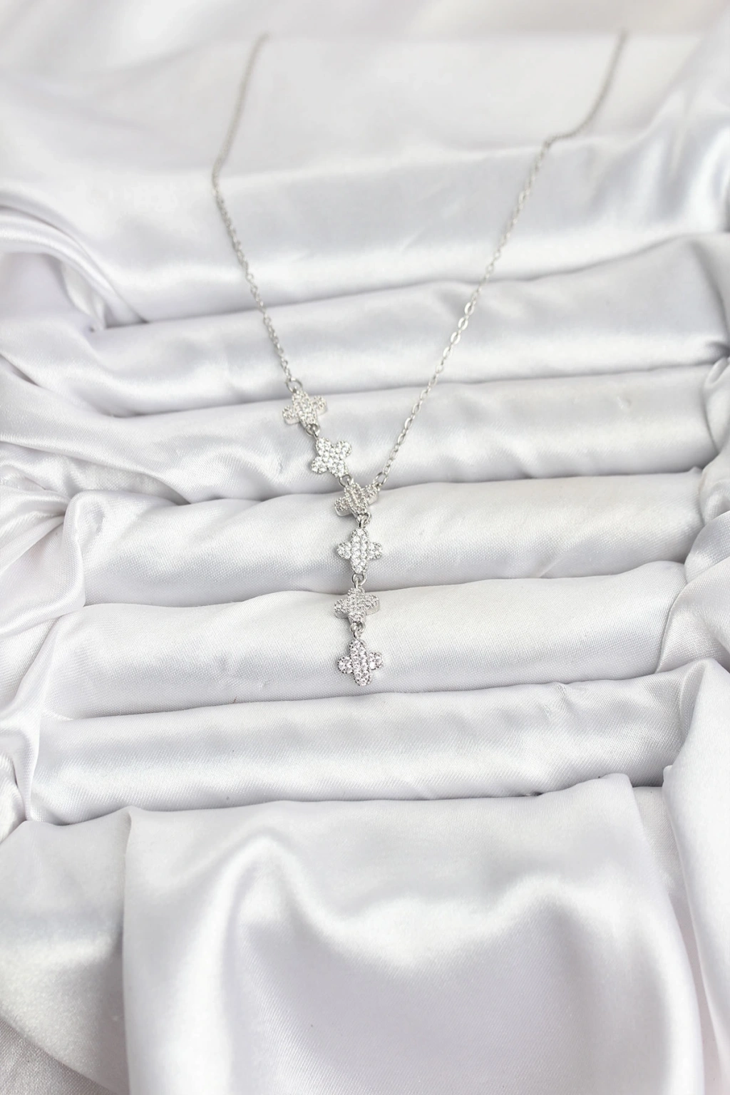 316L Çelik Zincir Gümüş Renk Yonca Model Kadın Kolye