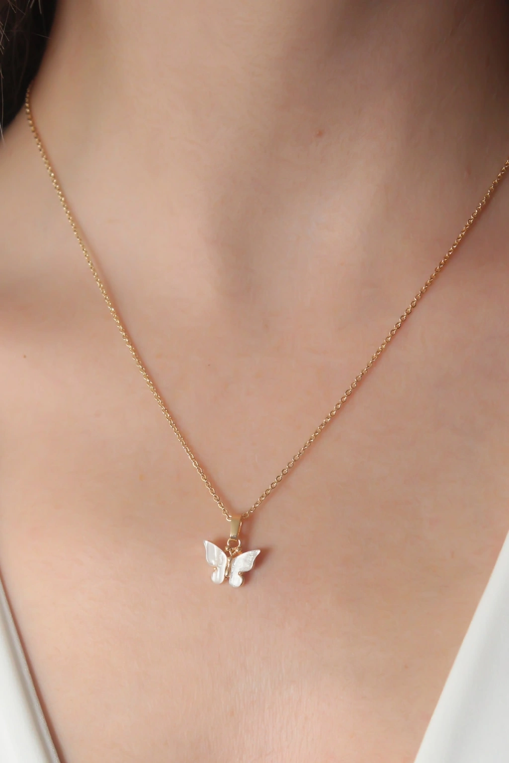Gold Beyaz Renk Kelebek Figür Kadın Kolye