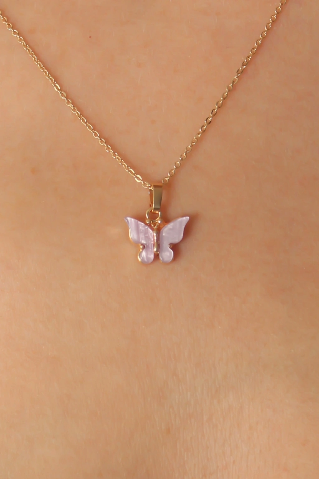 Gold Lila Renk Kelebek Figür Kadın Kolye
