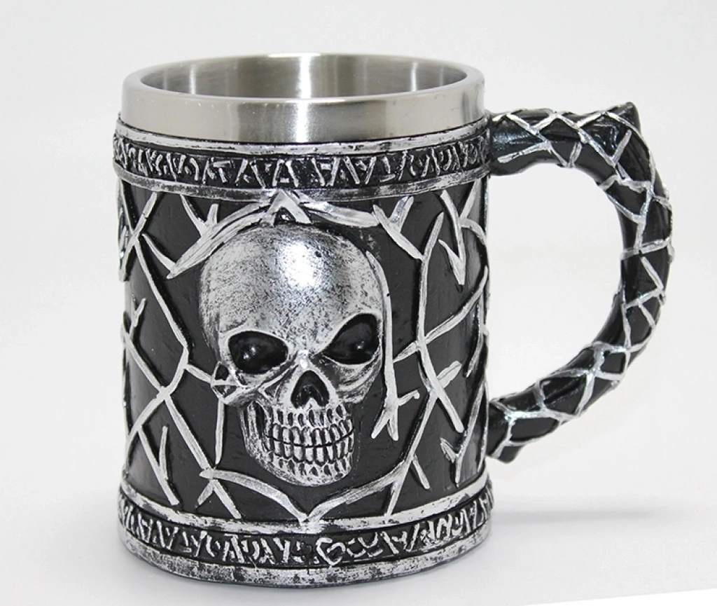 Gotik Kurukafa 3D Kabartmalı Paslanmaz Çelik Kupa Bardak Alk4380 Ürün Ölçüleri 8.5*11.5 Cm