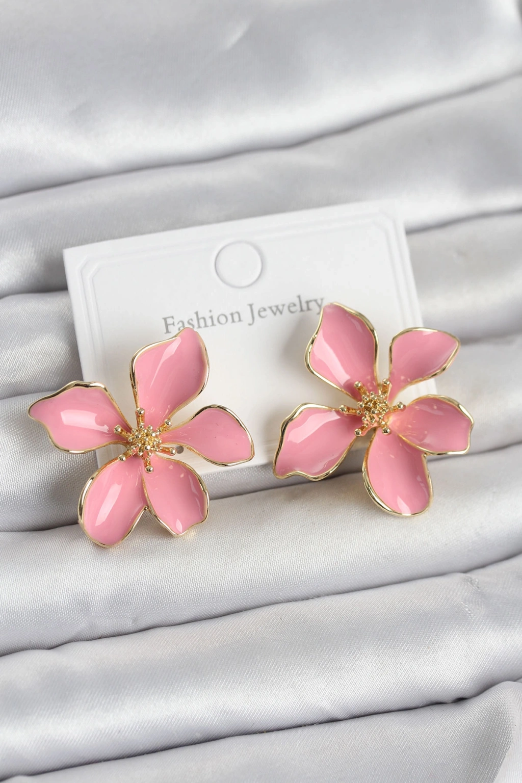 Pembe Mineli Çiçek Model Pirinç Kadın Küpe