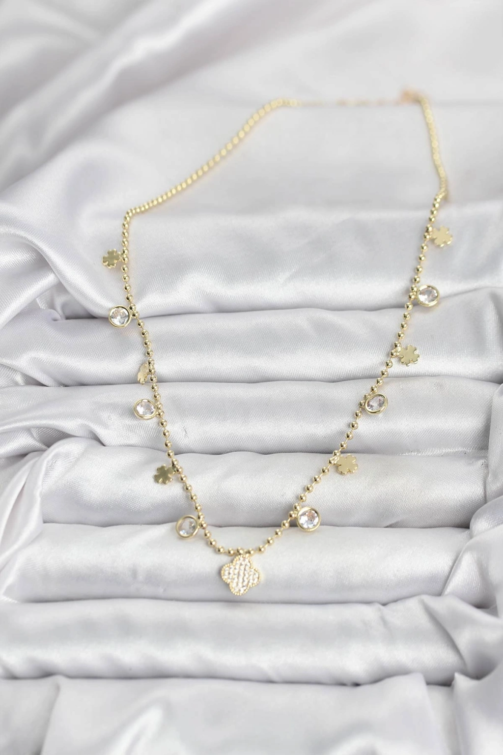 Pirinç Gold Renk Yonca Model Kadın Kolye