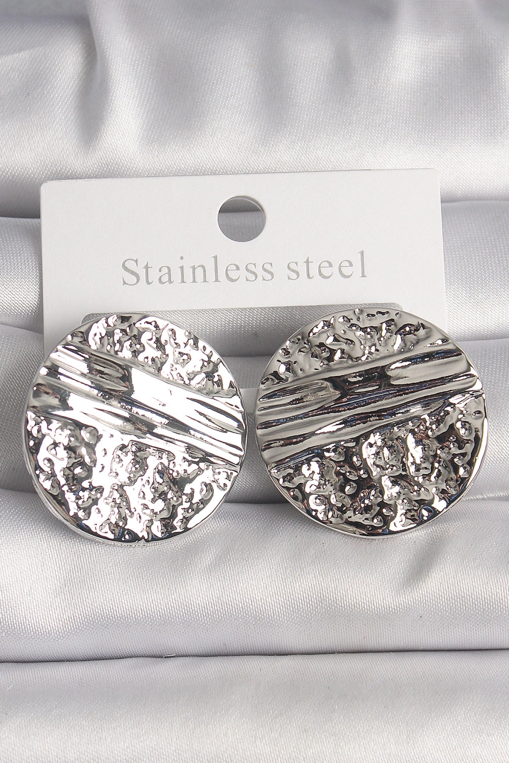 Pirinç Gümüş Renk İşlemeli Daire Plaka Model Kadın Küpe