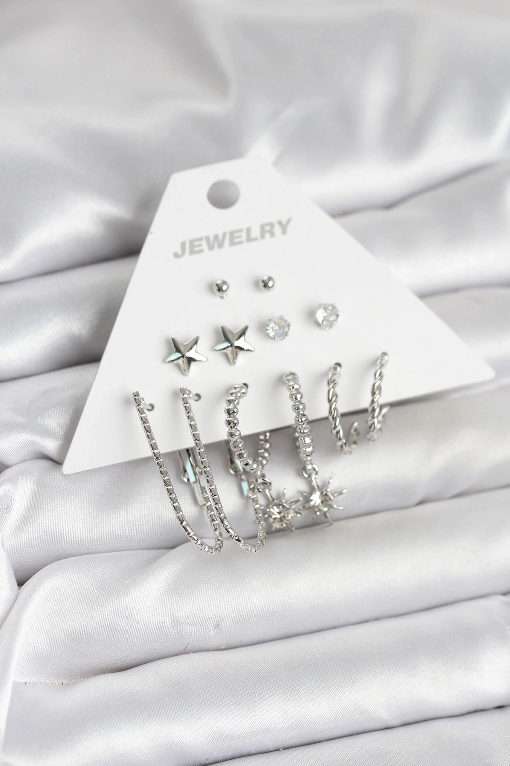 Pirinç Gümüş Renk Küpe Seti 6'lı