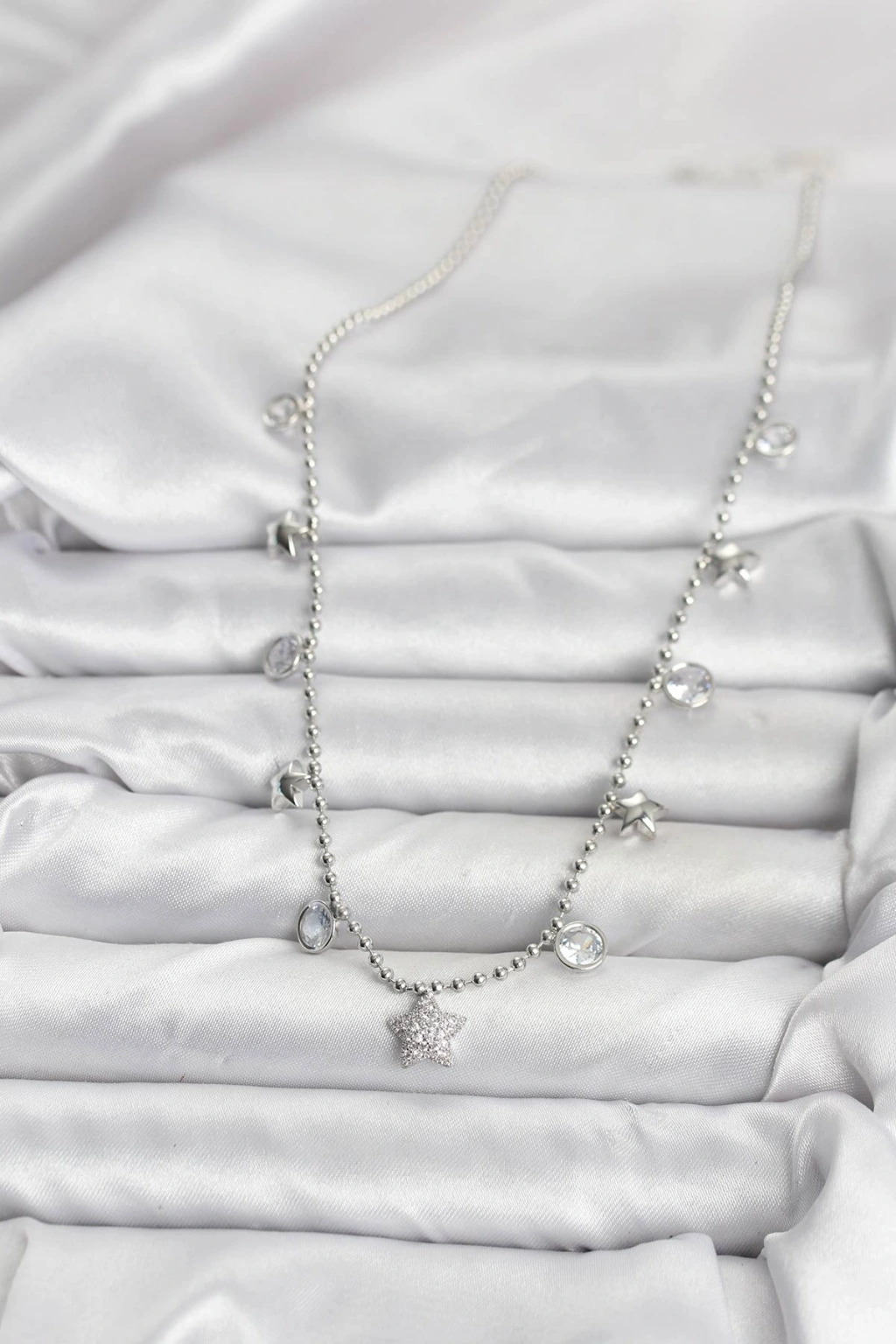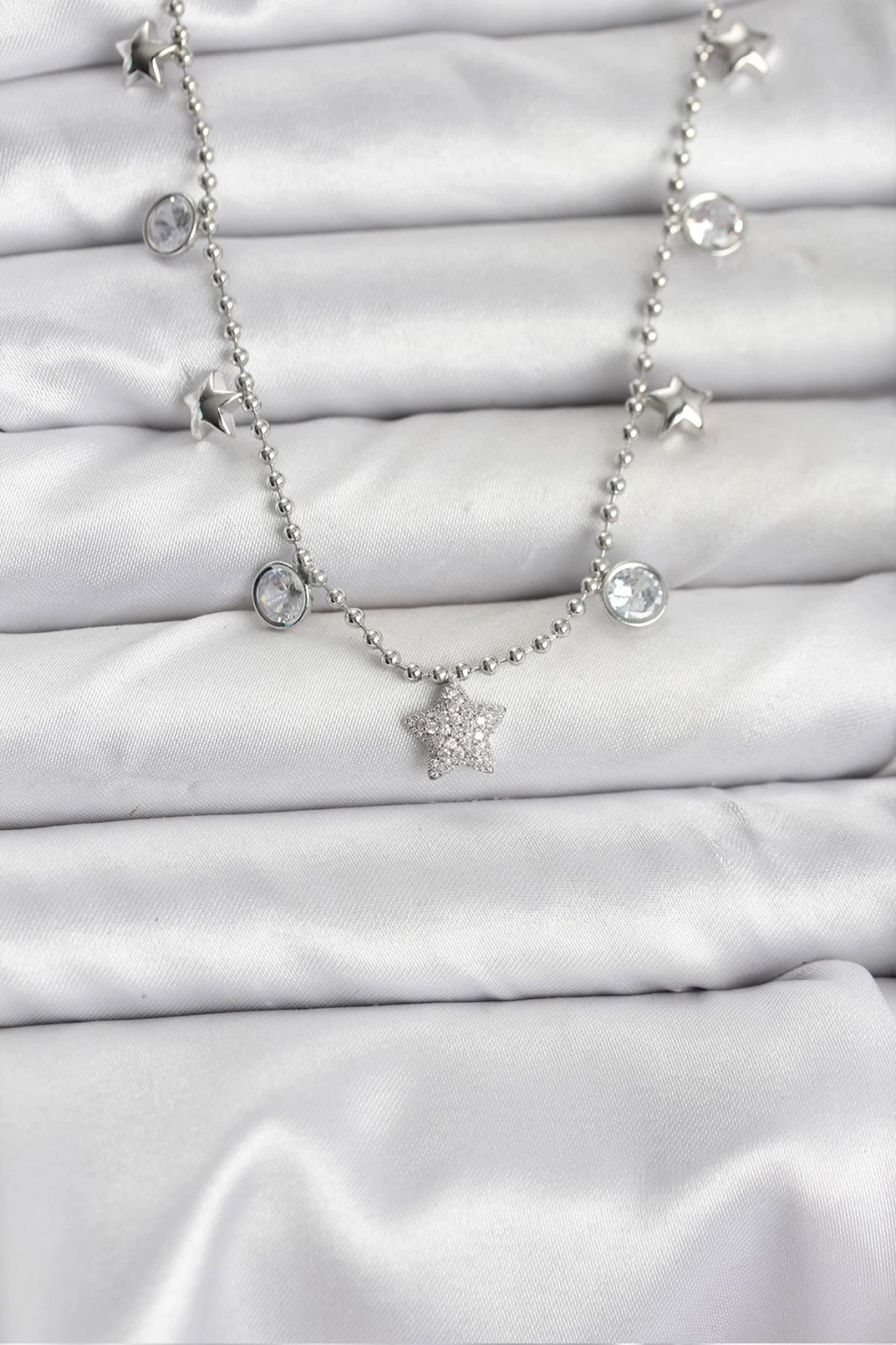 Pirinç Gümüş Renk Yıldız Model Kadın Kolye