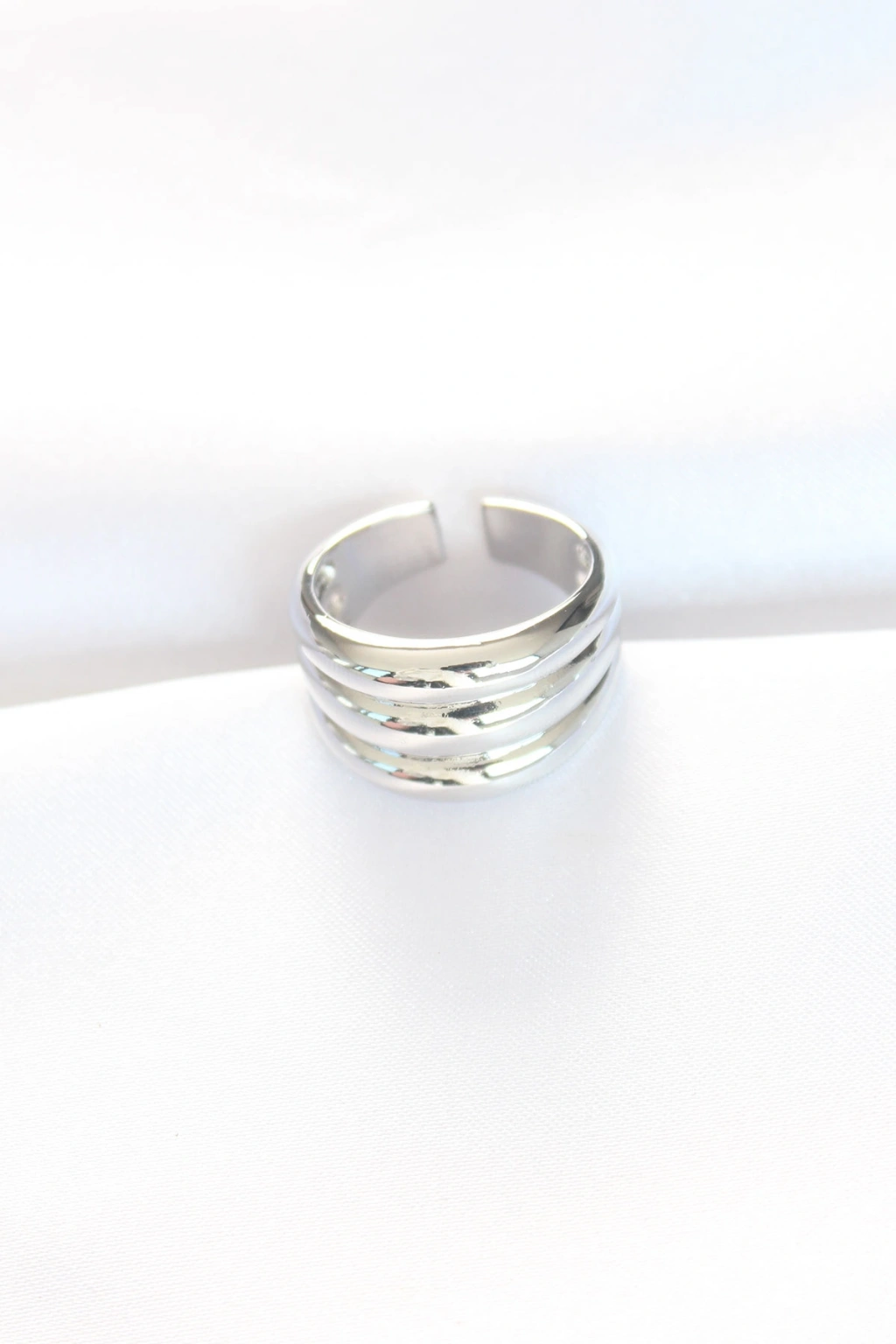 Silver Renk Ayarlanabilir Çizgili Bombe Yüzük