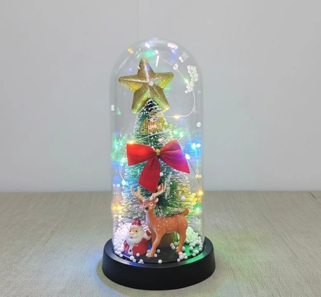 Yılbaşı Temalı Işıklı Dekoratif Cam Fanus Alk5080