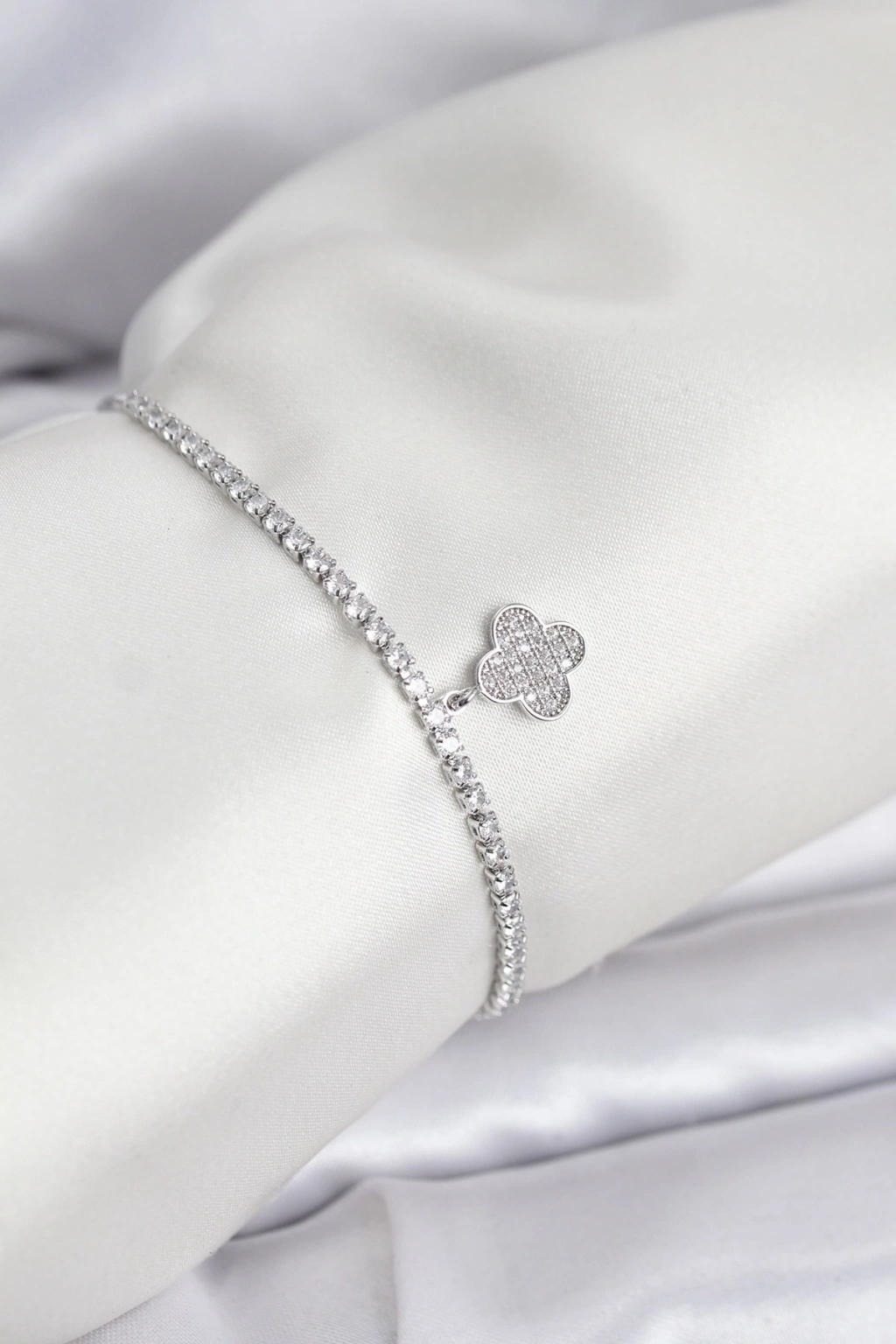 Yonca Model Zirkon Taşlı Gümüş Renk Asansörlü Su Yolu Bileklik